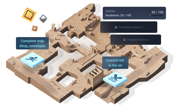 Выполняй миссии, выигрывай скины в конце матчей, играй с любыми скинами и многое другое!